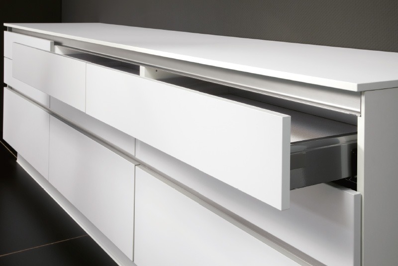 El cierre lento de cajones y gavetas minimiza el riesgo de pillarse los dedos. El control sincrónico garantiza una marcha uniforme y suave de los perfiles de guía.