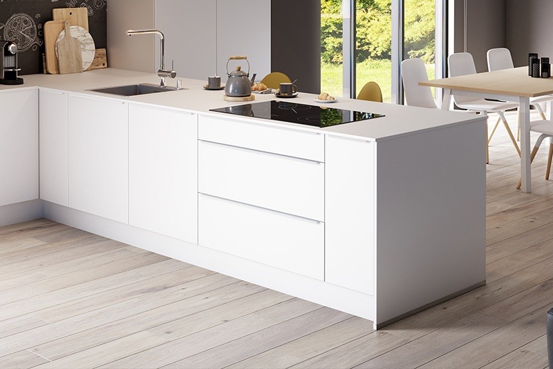 Las patas de los muebles de almacenamiento son fundamentales para la estabilidad de la cocina. Sin embargo, también es cierto que el diseño no está entre sus principales características. Por eso las escondemos con zócalos a medida. Además, al reducir su altura, los hemos estilizado. Así conseguimos un efecto aún más ligero y discreto. ¡Son perfectos para una cocina de líneas depuradas!