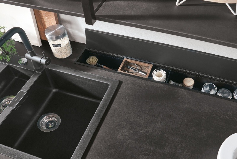 Las esponjas, bayetas y lavavajillas son productos muy prácticos pero muy poco estéticos. No pasa nada, tenemos la solución. Ocúltalos en la encimera gracias a nuestros espacios de almacenamiento superinteligentes. Voilà, ni rastro de ellos.