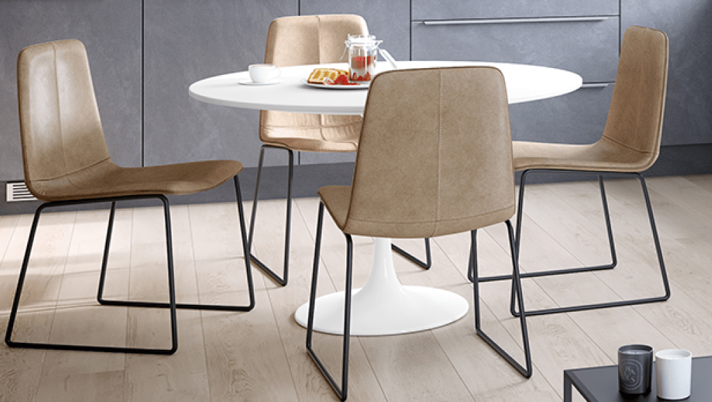 Personaliza el asiento y el respaldo de tus sillas según el uso que necesites y el estilo de tu cocina. Puedes elegir entre tejidos textiles, efecto piel o superficies técnicas fáciles de limpiar.
