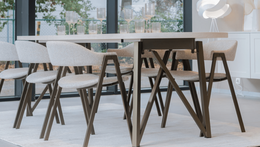 Puedes jugar con contrastes o buscar una estética uniforme, combinar estructuras metálicas con superficies de madera, apostar por tapizados cálidos o acabados más técnicos según tu estilo de vida. Una buena combinación mejora la ergonomía, facilita la circulación y convierte la zona de comedor en un espacio agradable para compartir, trabajar o disfrutar del día a día.