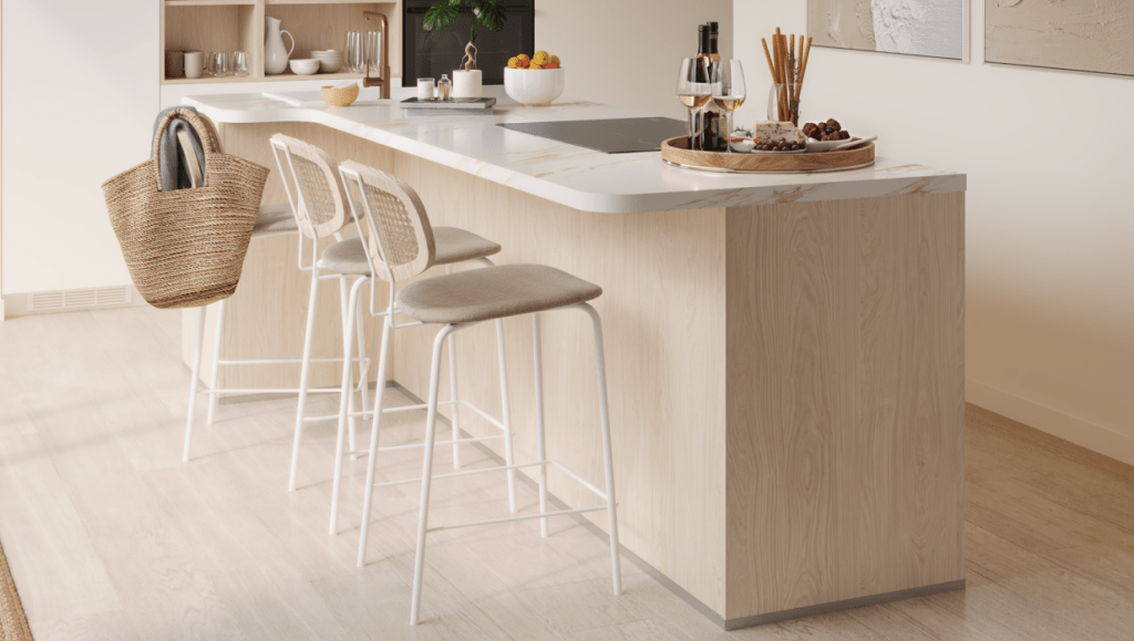 Diseñamos cada propuesta para que encaje perfectamente en cocinas con isla, barra americana o península, manteniendo equilibrio visual y comodidad.