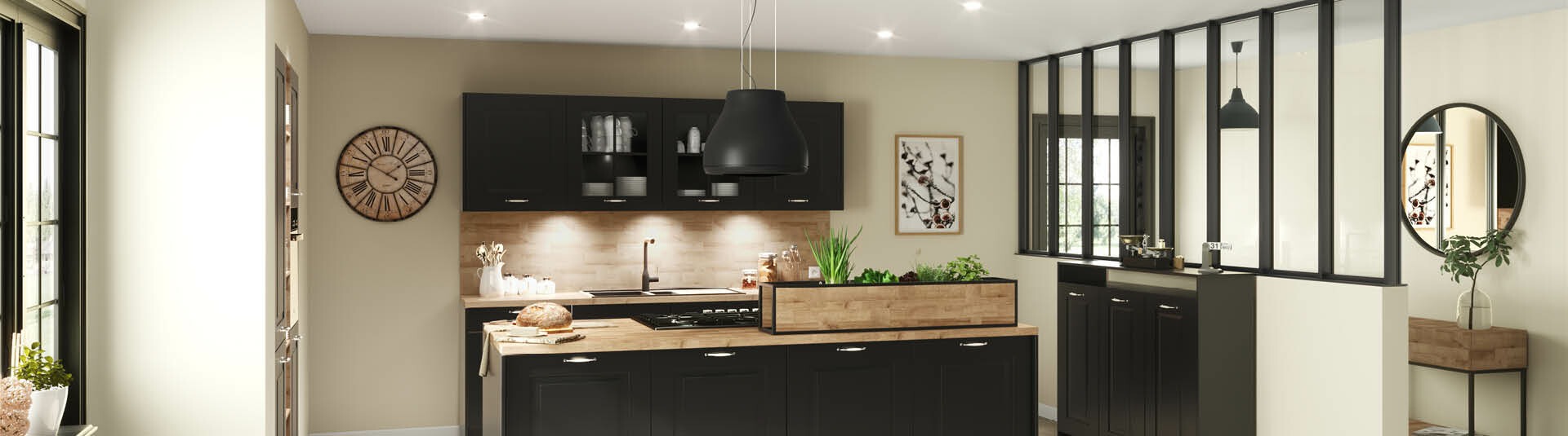 Contraste rústico con personalidad: Las cocinas rústicas negro y madera combinan la profundidad del negro con la calidez de la madera, creando espacios con carácter donde el diseño tradicional se interpreta con una estética más actual y equilibrada.